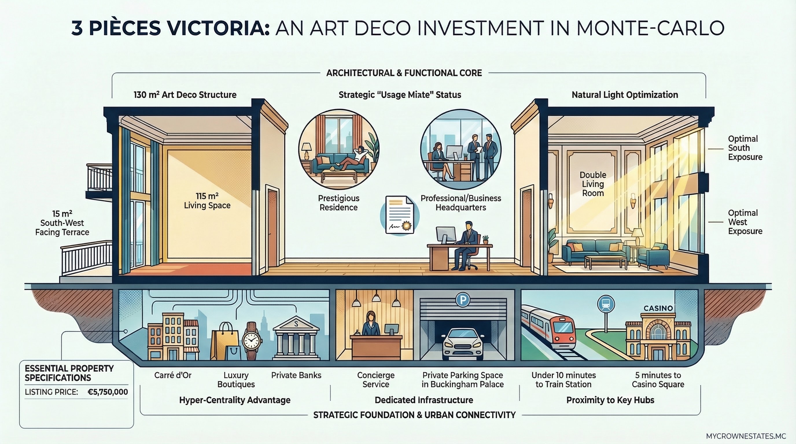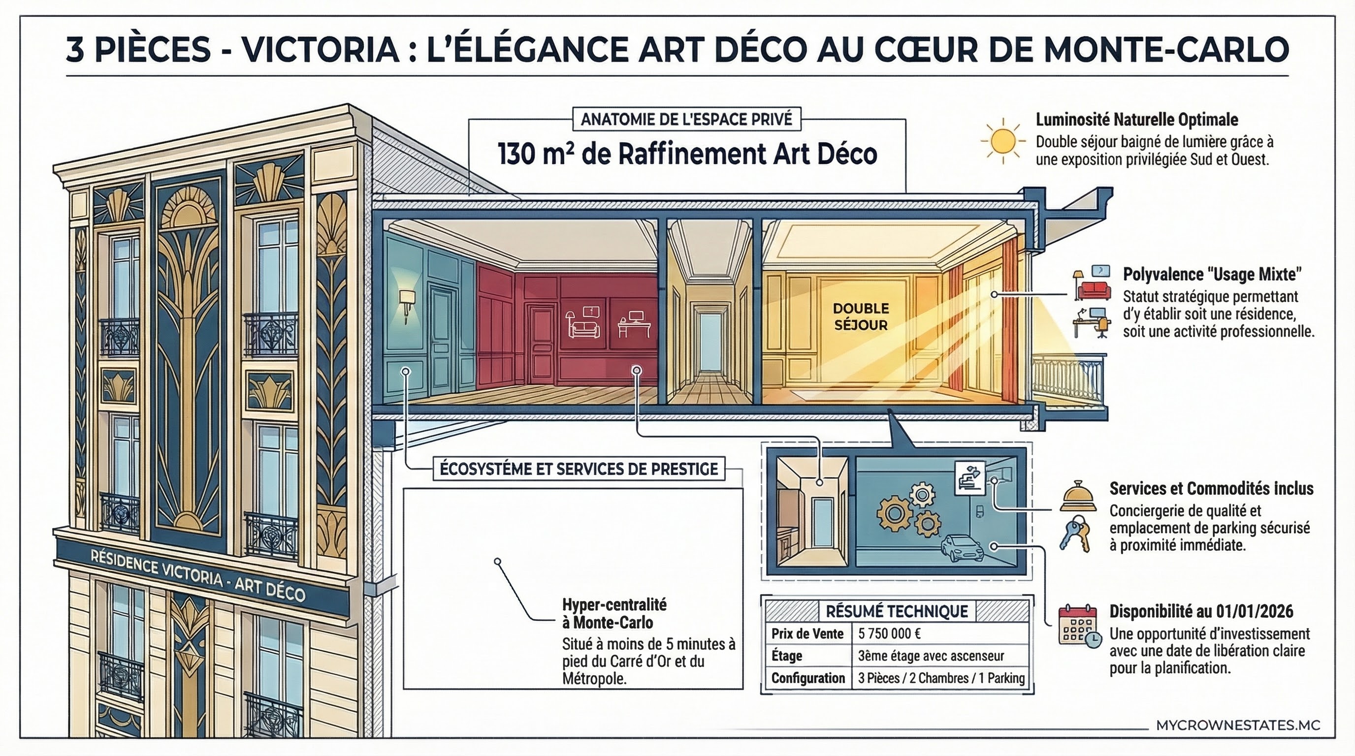 Architecture et Prestige : Le charme d'une résidence Art Déco entourée des boutiques et établissements les plus prestigieux de la Principauté.