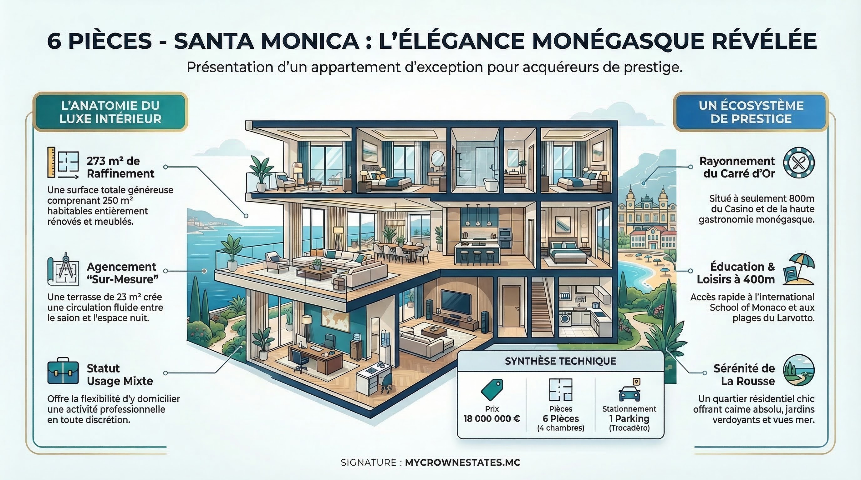 Rayonnement et Prestige : La proximité stratégique du Carré d'Or et de son Casino, situés à seulement 800m.