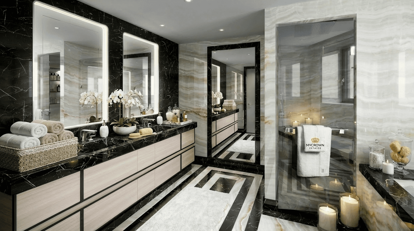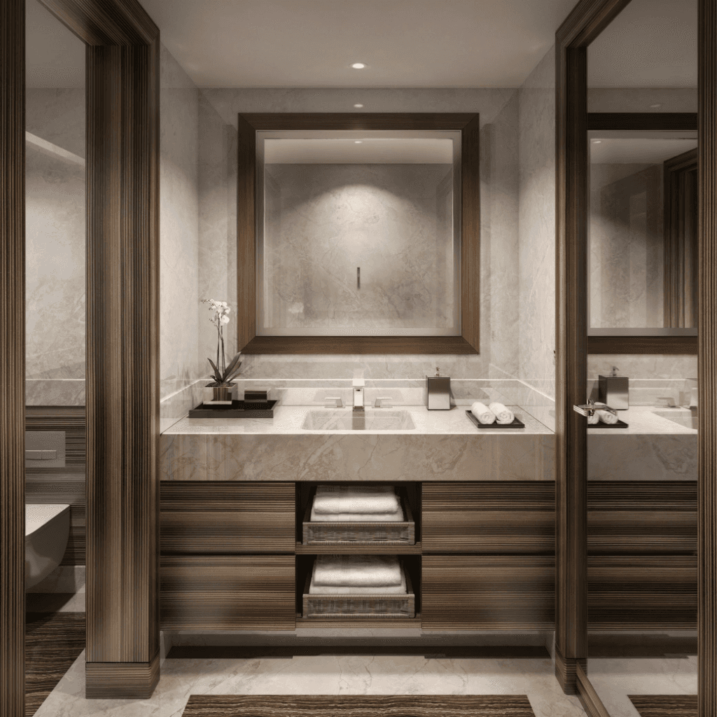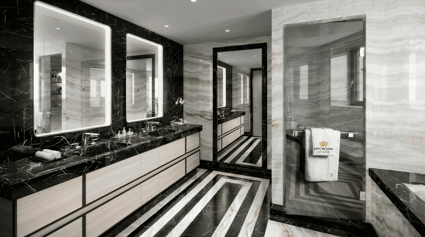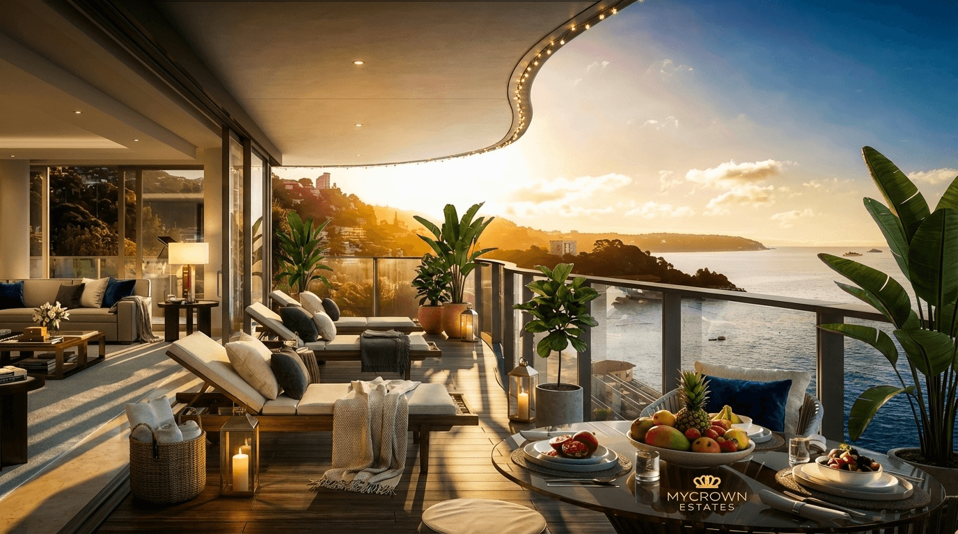 Résidence 5 étoiles neuve (2024) avec piscine privée, fitness, conciergerie hôtel, villas roof-top piscine, parking 3 niveaux ascenseurs dédiés.