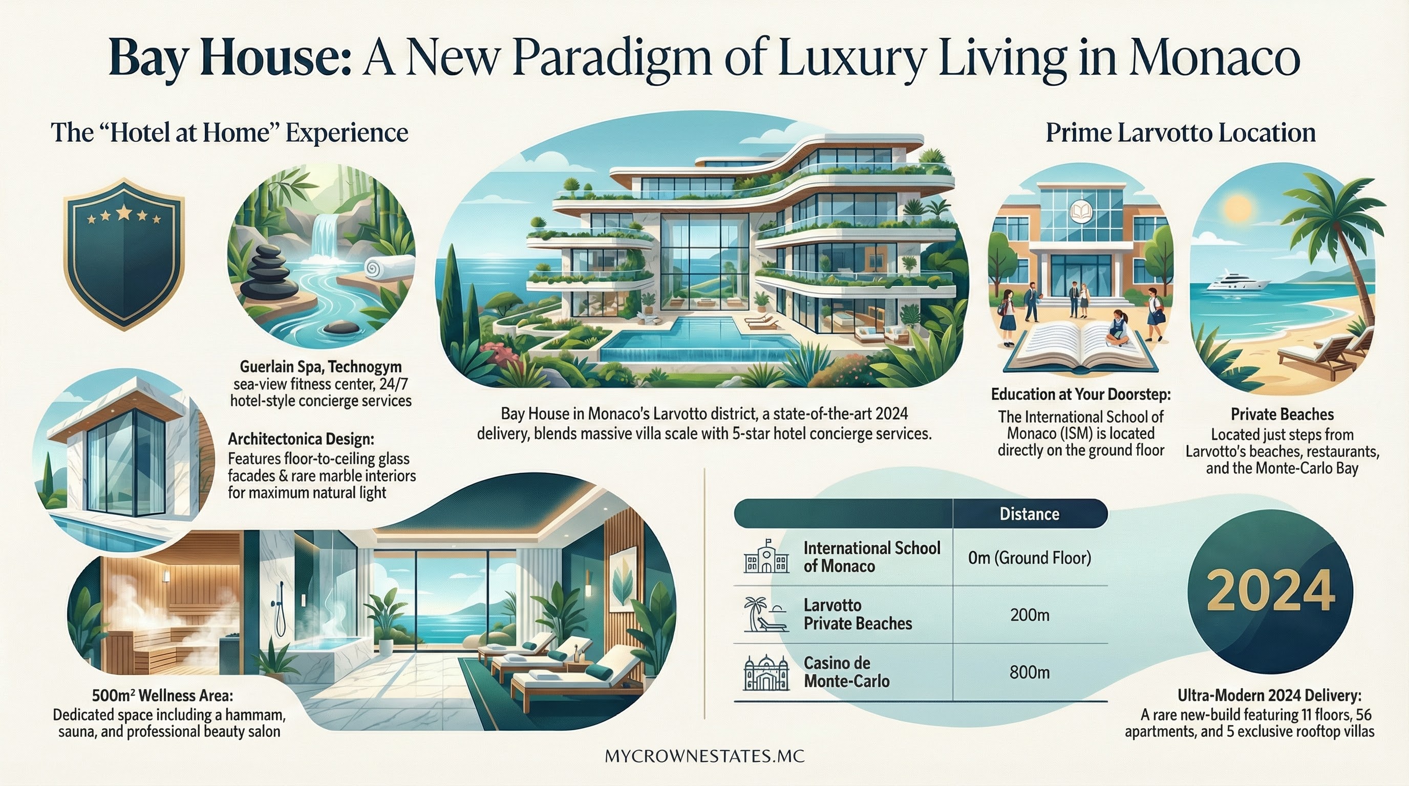 Bay House : le luxe neuf ultime au Larvotto, école internationale au pied de chez soi, plage à 200m, Casino à 800m.