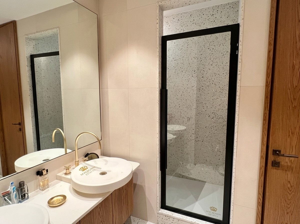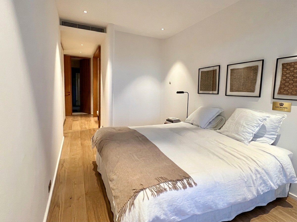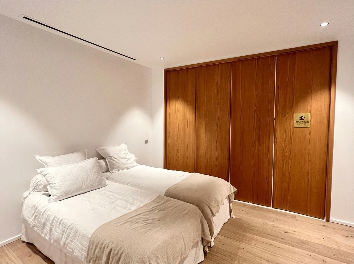 La partie nuit garantit une intimité totale avec deux superbes chambres dotées de leurs propres salles de bains privatives. Un bureau dédié, également équipé d'une salle de bains attenante, offre une flexibilité parfaite pour accueillir des invités ou aménager un espace de travail professionnel luxueux. L'appartement dispose de prestations de très haut standing : toilettes invités, buanderie indépendante, climatisation, systèmes de sécurité avancés et fenêtres coulissantes.